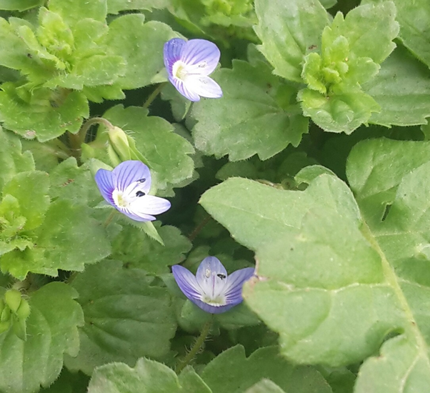 With the hedgerows now in bloom with all the various prunus (plum related) trees, Thanks to Tony for some lovely pics of some less obvious stars of the season. This dark-edged beefly was seen on the wet weather pond near the orchard. And Tony also found this Common field speedwell.